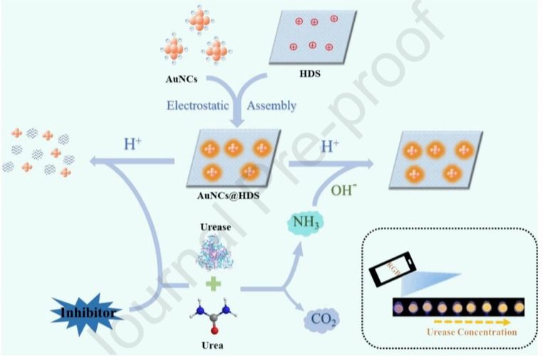 色情网 王冠男教授在分析化学领域中科院一区杂志STalanta(IF 6.1)期刊发表了关于基于羟基双盐基智能生物传感器用于现场检测尿素酶及其抑制剂的研究。本研究制备了一种简单灵敏的荧光传感平台,用于检测尿素酶及其抑制剂。该荧光传感平台利用了由羟基双盐(HDS)诱导的金纳米簇(AuNCs)独特的荧光增强效应和尿素酶催化水解尿素的特异性。将H+诱导的AuNCs@HDS的荧光淬灭与尿素酶催化水解尿素产生的OH- 相结合从而实现 AuNCs@HDS 的荧光响应变化,...