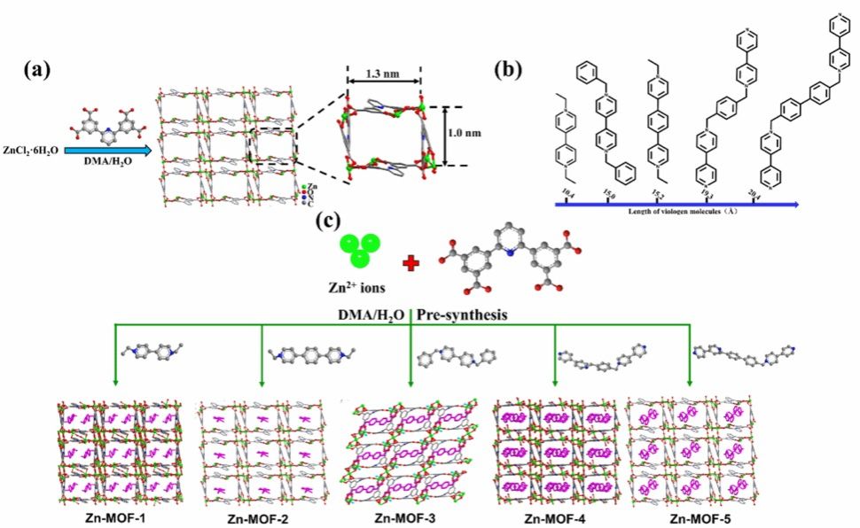 色情网 王冠男教授在化学领域中科院二区杂志ACS Applied Materials&Interfaces(IF 9.5)期刊发表了关于由MOF及系列紫精变体通过主客体作用的一系列 Viologen@Zn-MOF 材料及用于光致变色行为的研究。本研究以紫精为客体,三维Zn-MOF为主体,构建了五种基于紫精的主-客体材料。这些复合材料在紫外光照射下显示出客体依赖性的颜色可调发射光和紫外光照射下的光调节发光。其中,Zn-MOF-3在强度低至0.1 μw/cm2时表现出良好的光着色性。这一特性已成功地应用于紫外比色剂量计。...